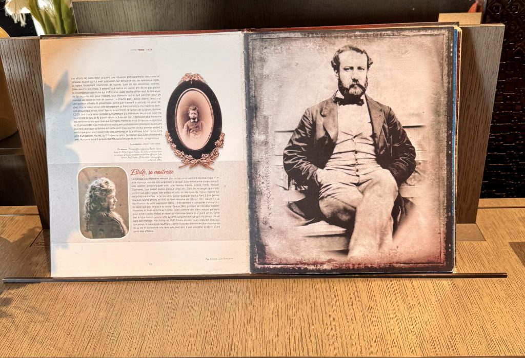 Sur les tables, des assiettes littéraires portent des citations de Jules Verne. Au fil du service, les livres viennent garnir la bibliothèque, étage après étage, métaphore d’un voyage qui se construit, plat après plat, page après page. L’esprit des lieux est inscrit entre littérature et gastronomie, entre rêve et réalité, entre l’œuvre de l’écrivain explorateur et celle des artisans qui perpétuent son esprit d’aventure et d’audace.