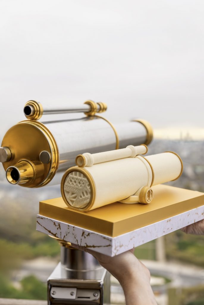 50 exemplaires seront reproduits seulement. Un tirage limité qui dit aussi quelque chose de notre époque : à l’heure de la production de masse, cette rareté assumée redonne de la valeur à l’objet, de la sacralité au moment. Cinquante exemplaires pour cinquante moments suspendus, cinquante voyages extraordinaires. Une création qui restera, elle, suspendue dans nos mémoires comme ces lunettes restent suspendues au sommet de Paris, veillant sur la ville, veillant sur nos rêves, nous invitant sans cesse à regarder plus loin, plus haut, plus juste.