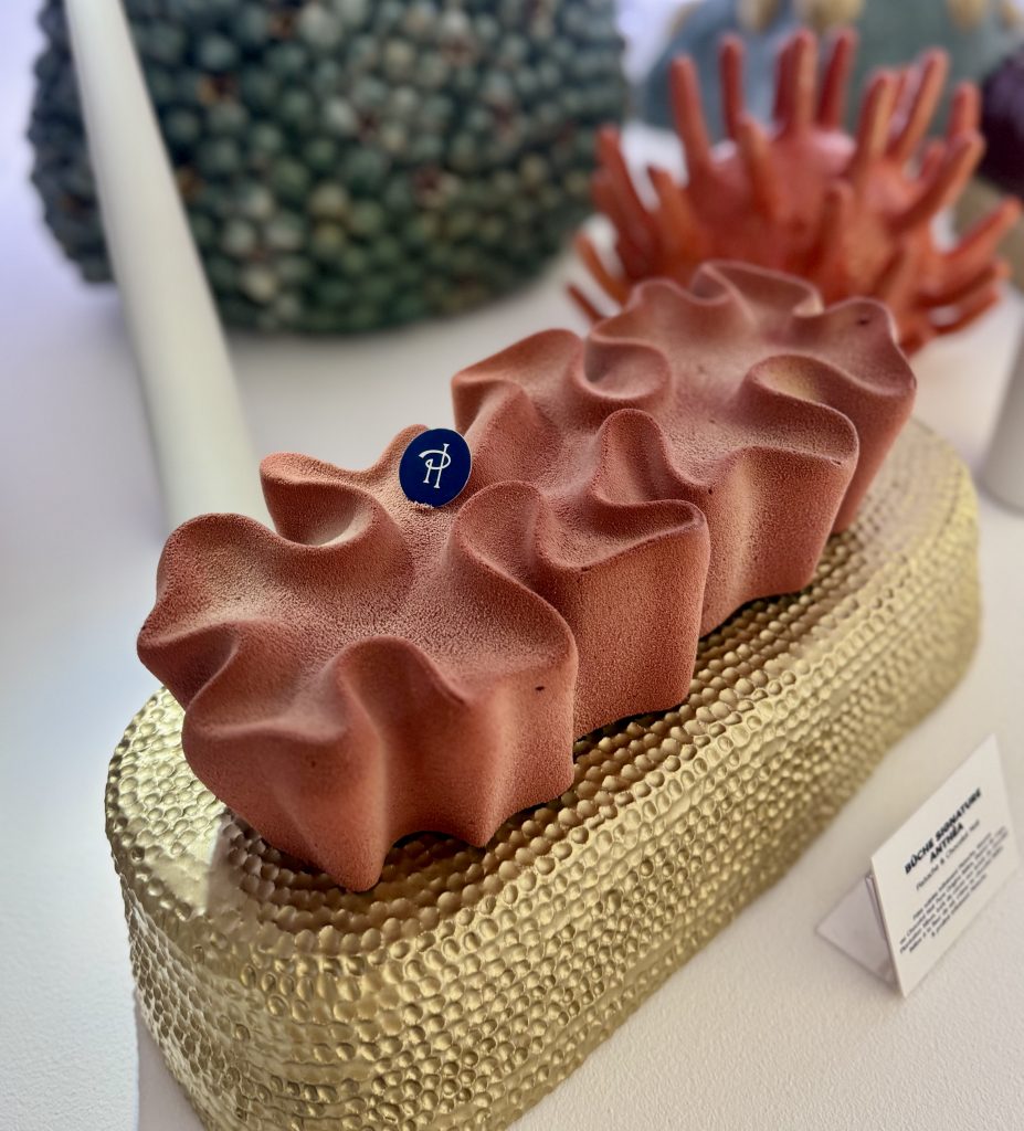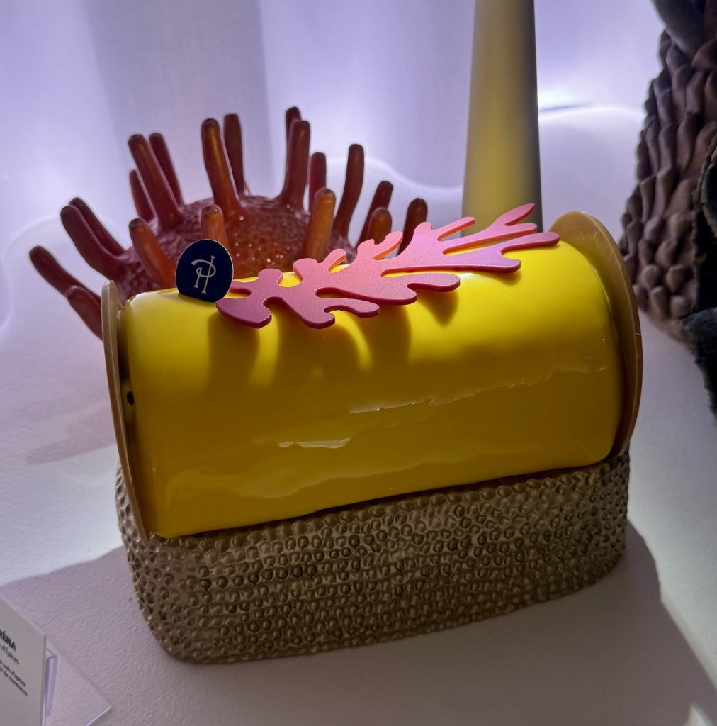 Cette année, la maison Pierre Hermé nous emmène explorer les profondeurs des abysses et du goût et ce, à travers une démarche engagée. Pour sa collection de Noël, elle a collaboré avec Courtney Mattison, artiste céramiste américaine et biologiste marine qui crée des sculptures monumentales de coraux en céramique pour sensibiliser aux enjeux du changement climatique et à la protection des océans. L’association The Coral Planters était également présente lors de la présentation, mettant en lumière ce partenariat et son action pour la restauration des récifs coralliens et la préservation des écosystèmes marins.