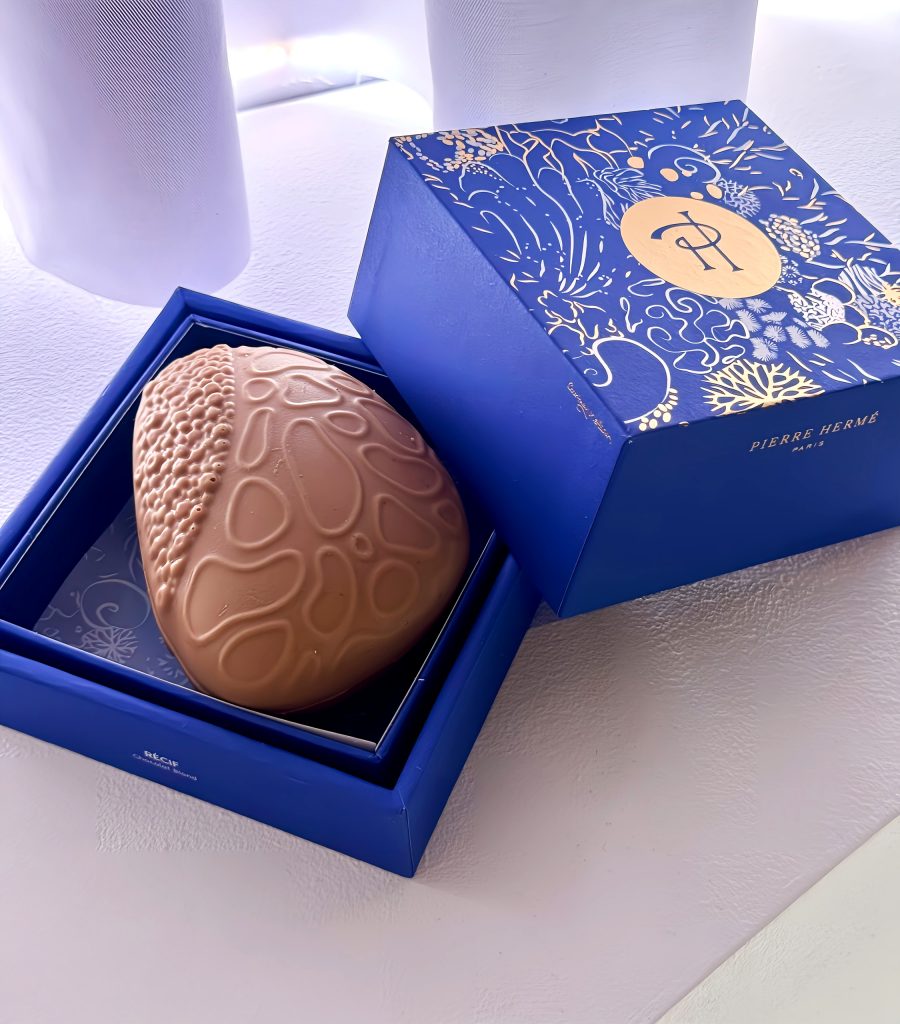 D’ailleurs, la création Récif (29€) reflète cet engagement. Ces galets pralinés, aux formes rappelant les courants marins, se déclinent en trois saveurs : praliné noisette et chocolat noir, praliné amande et chocolat au lait, et praliné noix de pécan et chocolat blond. Une partie des ventes est reversée à l’association The Coral Planters.