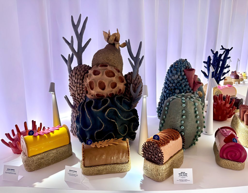 Cette année, la maison Pierre Hermé nous emmène explorer les profondeurs des abysses et du goût et ce, à travers une démarche engagée. Pour sa collection de Noël, elle a collaboré avec Courtney Mattison, artiste céramiste américaine et biologiste marine qui crée des sculptures monumentales de coraux en céramique pour sensibiliser aux enjeux du changement climatique et à la protection des océans. L’association The Coral Planters était également présente lors de la présentation, mettant en lumière ce partenariat et son action pour la restauration des récifs coralliens et la préservation des écosystèmes marins.