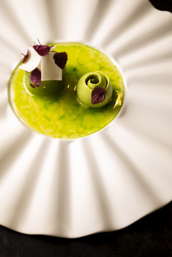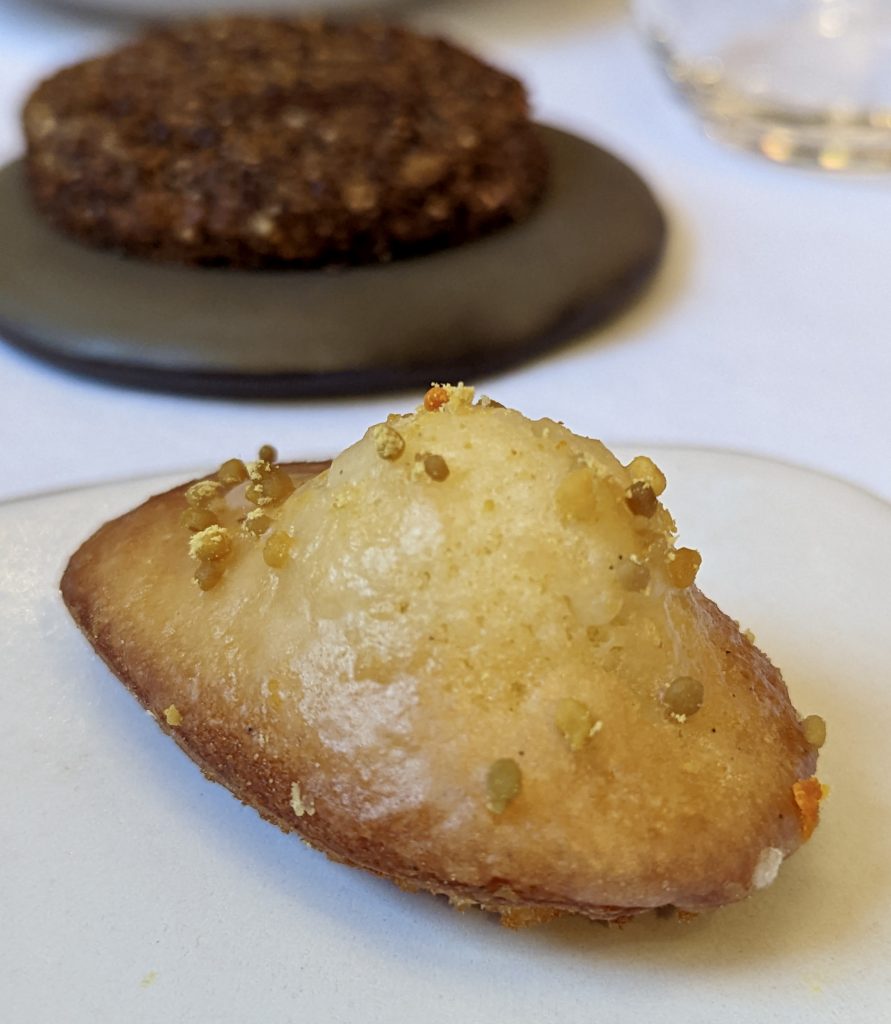 Les tea time qu’il organisait avec Morgane révélaient déjà sa vision entre lesmadeleines au miel et pollen de Normandie, le cheesecake citron-fleur d’oranger ou encore le cake caramel-noix de pécan.Toujours des produits locaux sublimés par un agrume ou une herbe (atsina cress, tagète, baies de Magao),sans jamais dénaturer mais magnifier.