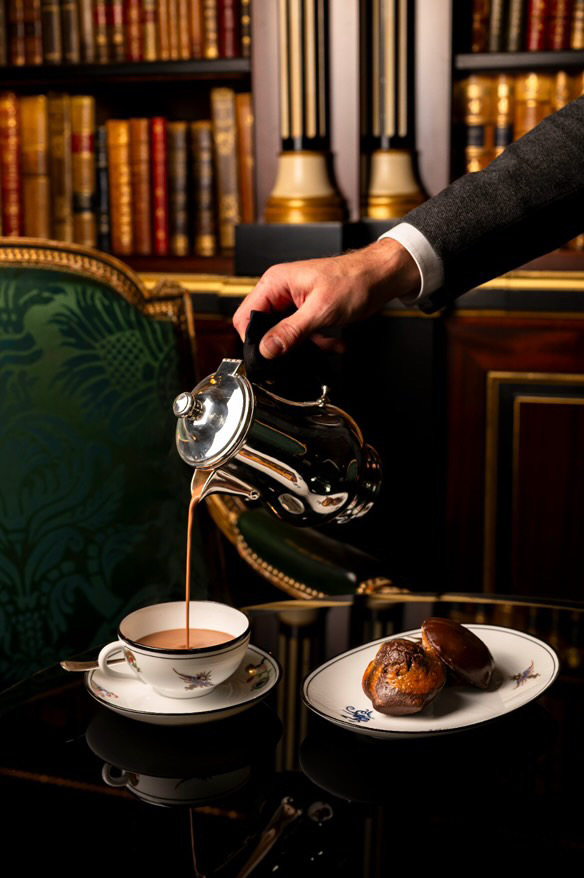 L’offre « chocolat chaud et madeleine » qu’il a lancée à La Réserve démontre sa vision : « C’est une madeleine très simple, tout ce qu’il y a de plus basique en pâtisserie mais cela nous tenait à cœur de faire une belle madeleine pour les clients. Elle est marbrée, garnie d’un caramel, enrobée d’un excellent chocolat et pas trop sucrée. On a enlevé du sucre à l’intérieur et dans le glaçage, on a mis une pointe d’amaretto pour ne pas avoir ce côté sucré. Moelleuse, forcément. On les cuit à 14h30 pour les tea time de 15h. Et on a incorporé un caramel au beurre salé chocolat à l’intérieur, ce qui fait un cœur onctueux. »