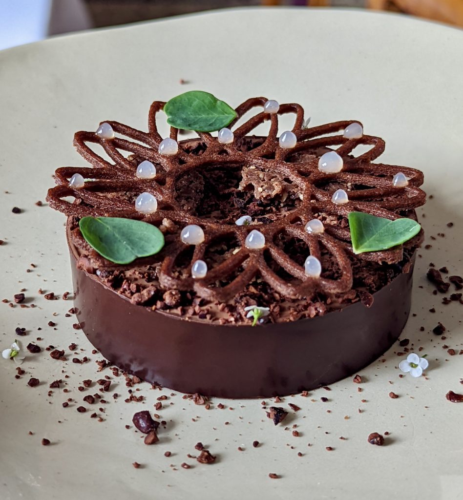 C’est en 2022 que Jordan prend le poste de chef pâtissier au Lucas Carton, restaurant gastronomique étoilé de la place de la Madeleine, sous la houlette du chef Hugo Bourny« Je n’avais jamais fait de desserts à l’assiette auparavant », m’avoue-t-il. La pression aurait pu être écrasante, paralysante même mais Jordan est armé d’un courage qui ne se voit pas de l’extérieur, une détermination d’acier dissimulée sous des dehors tranquilles :  « Je me suis dit : je veux faire ça, je veux essayer, et j’ai tout fait pour que ça marche. C’est surtout d’apprendre sur soi, de se dire qu’il y a beaucoup de choses qui sont mentales. »